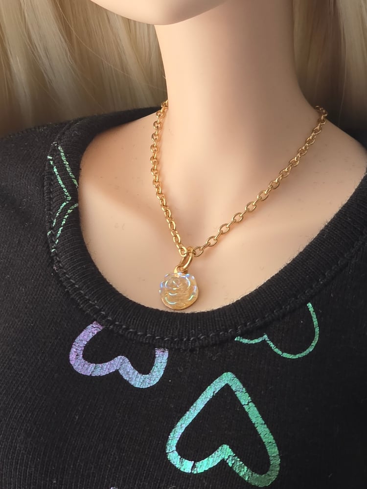 Dainty peach colored flower on a gold chain, with crab claw clasp. Color will vary slightly.